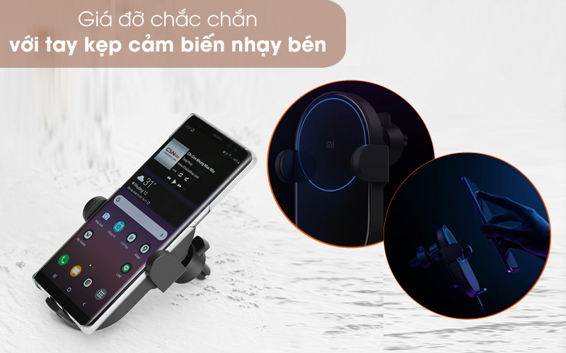 Đặc biệt, sạc không dây có tay kẹp với cơ chế đóng mở cảm biến tự động nhạy bén. Khi người dùng đưa điện thoại lại gần, cảm biến sẽ tự động mở 2 má kẹp ra để đặt điện thoại vào, chỉ cần kéo nhẹ là 2 má kẹp sẽ tự động mở ra.