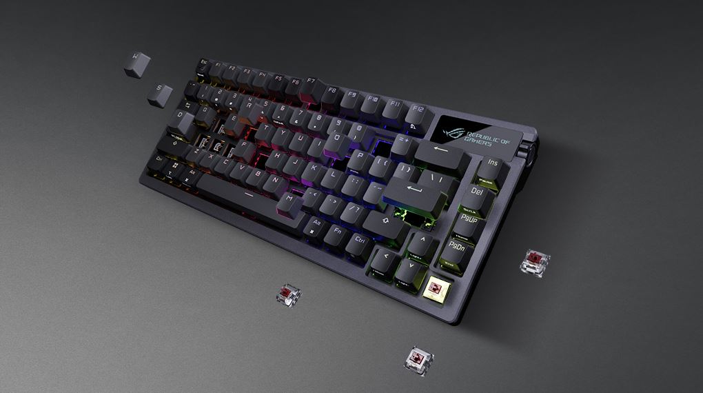 Ngoài ra, hệ thống stabilizer của ROG cũng được bôi trơn và tinh chỉnh kỹ, giúp các phím dài như Space, Shift hay Enter hoạt động ổn định, đều tay và gần với cảm giác của switch chính. Khả năng hot-swappable cho phép bạn thay đổi switch theo sở thích cá nhân, mang lại tiềm năng tùy biến cao mà không cần can thiệp phức tạp vào phần cứng.