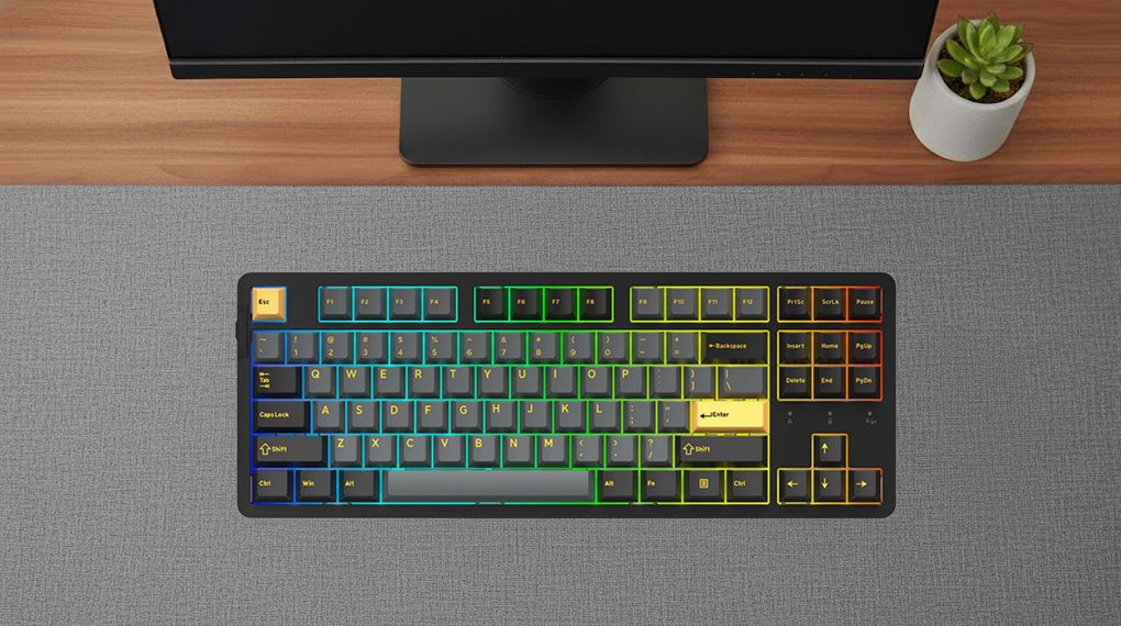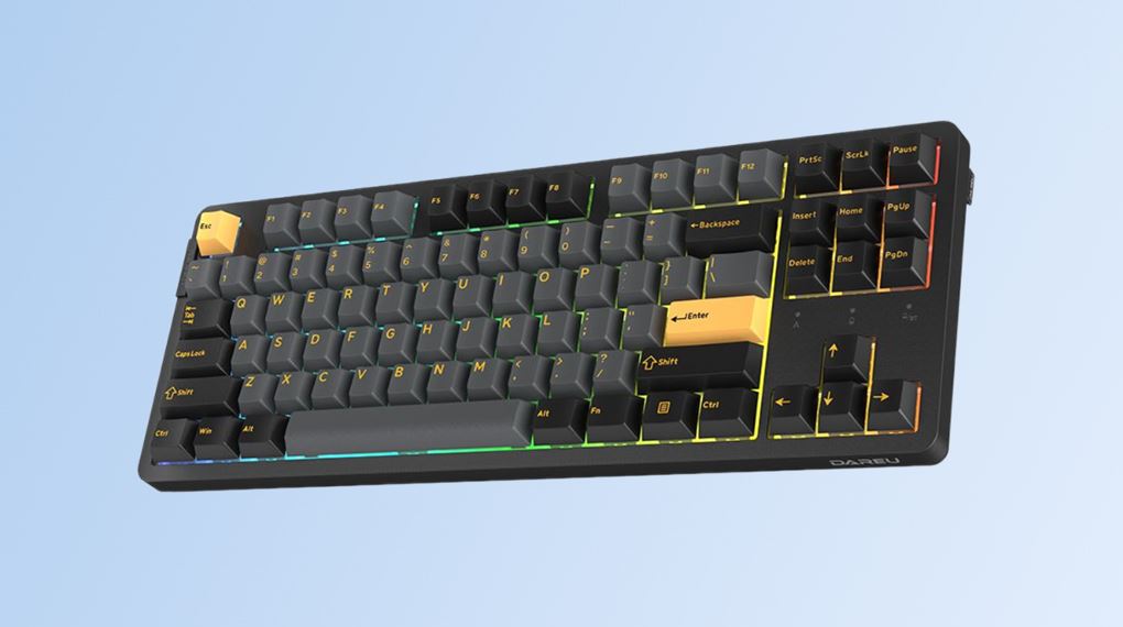 Thiết kế TKL nhỏ gọn và LED RGB sống động trên bàn phím Dareu EK87 Pro mang lại không gian làm việc hiện đại