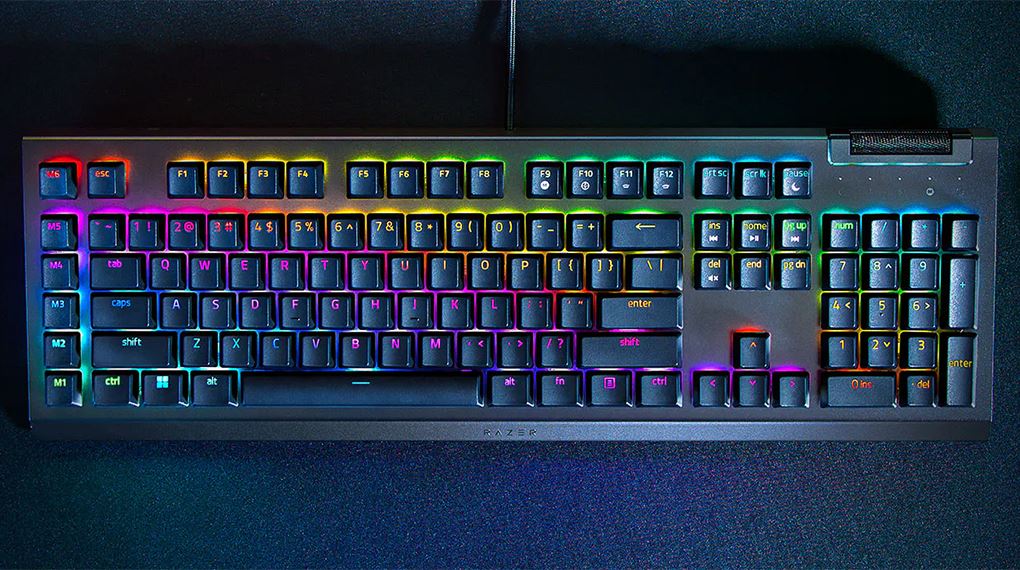 Một trong những yếu tố làm nên sức hút của Razer BlackWidow V4 X chính là hệ thống Razer Chroma RGB rực rỡ. Mỗi phím đều có khả năng chiếu sáng, tạo nên hiệu ứng đồng bộ theo nhịp nhạc, chuyển động trong game hoặc cảm xúc người dùng.