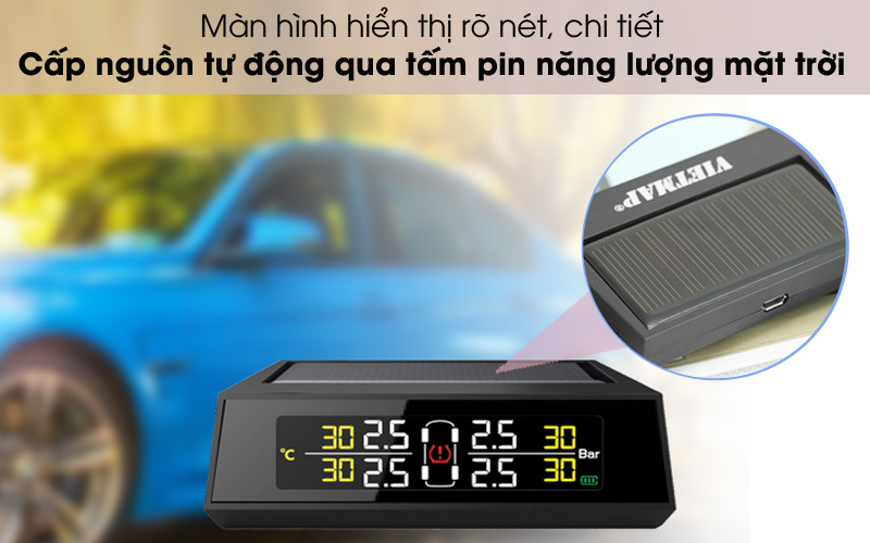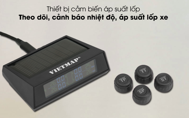 Thiết bị cảm biến áp suất lốp gắn trên bánh xe Vietmap V1 đen theo dõi ổn định và chính xác các thông số: Nhiệt độ lốp xe, áp suất lốp xe, chế độ cảnh báo áp suất lốp thấp, cảnh báo áp suất lốp cao và cảnh báo nhiệt độ lốp cao.