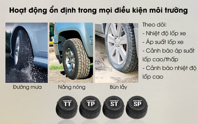 Thông số đo đạc ổn định, chính xác trong mọi điều kiện môi trường tiếp xúc của lốp xe, từ đường mưa ngập nước đến đường khô nắng nóng hay mặt đường bùn lầy.