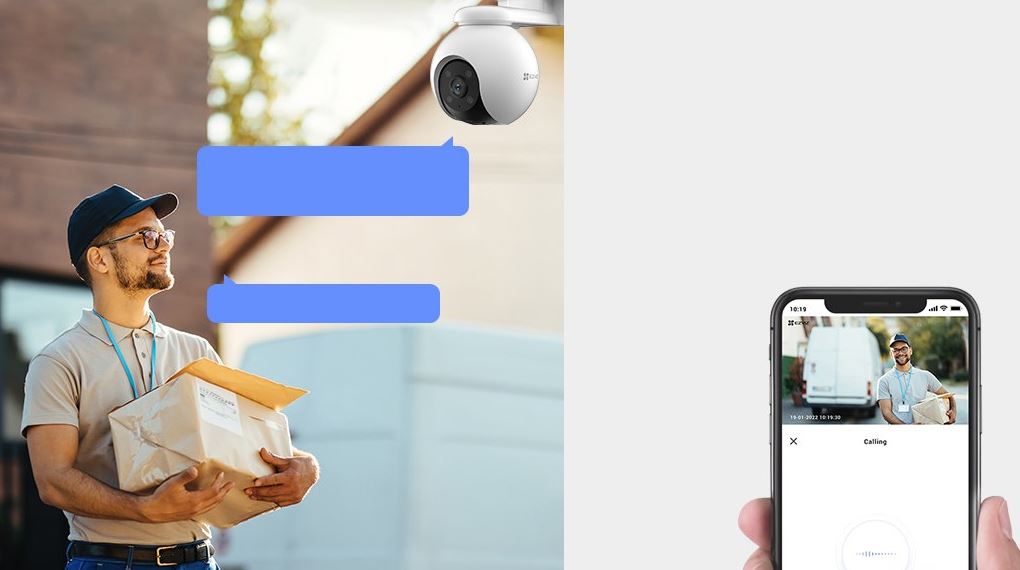 Một trong những tiện ích đáng chú ý khác của Ezviz H8 là tính năng đàm thoại hai chiều. Micro và loa tích hợp cho phép người dùng giao tiếp trực tiếp với người đang ở khu vực giám sát, hỗ trợ tốt trong việc cảnh báo nhanh chóng và có thể sử dụng để trò chuyện trong các tình huống cần thiết, tăng cường sự tương tác từ xa.