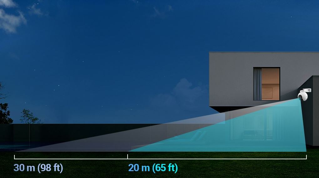 Về khả năng quan sát ban đêm, camera giám sát Ezviz sử dụng công nghệ nhìn xa hồng ngoại với tầm nhìn 30 mét trong tối (đen trắng) và 20 mét khi có màu, đáp ứng tốt các yêu cầu về an ninh cả ngày lẫn đêm.