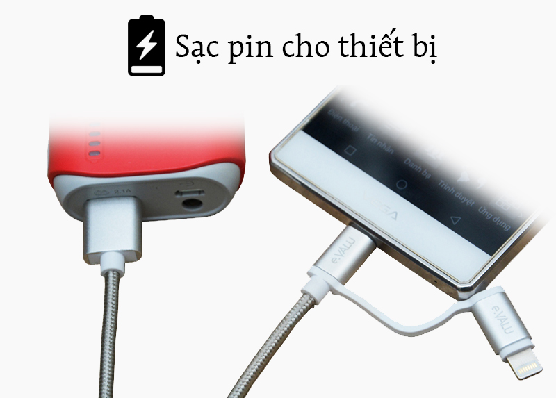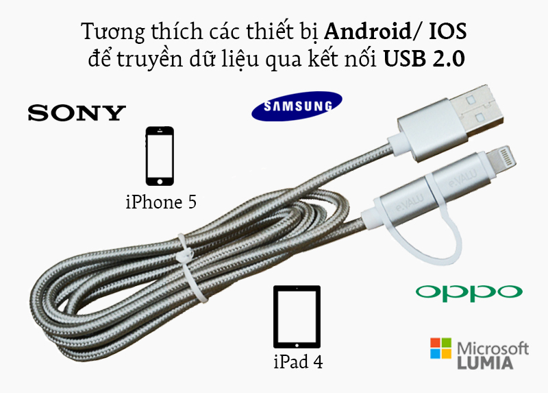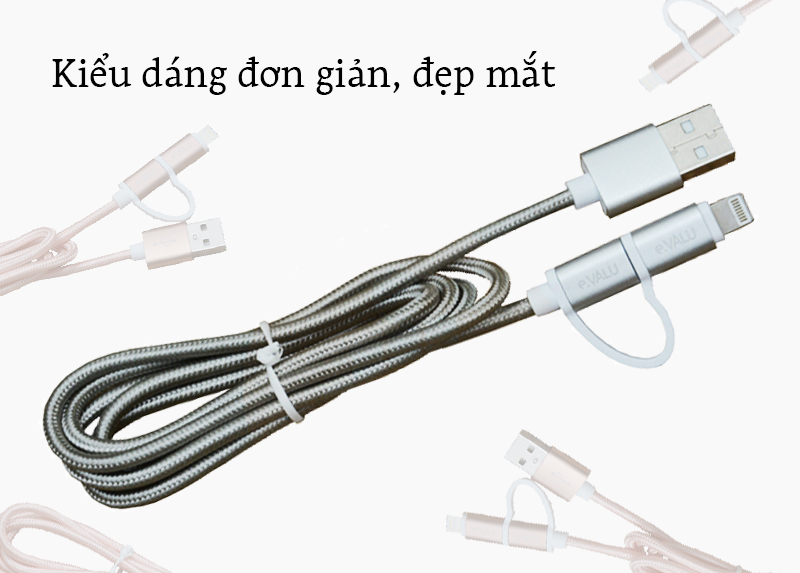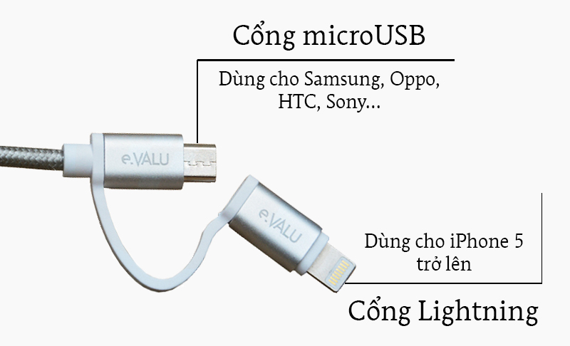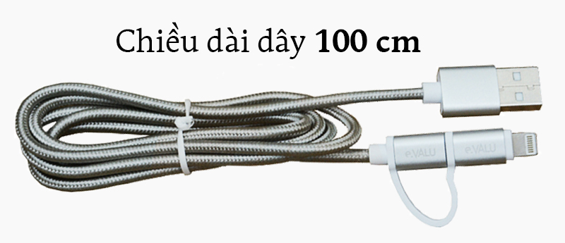 Dây cáp 2 in 1 Lightning và Micro USB 1 m eValu LTD-01