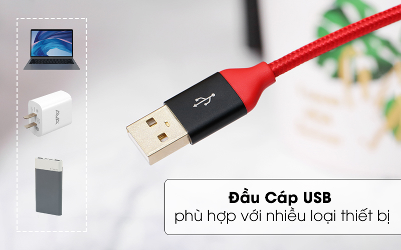 • Đầu cáp USB phù hợp với nhiều loại thiết bị như sạc dự phòng, adapter sạc, laptop...