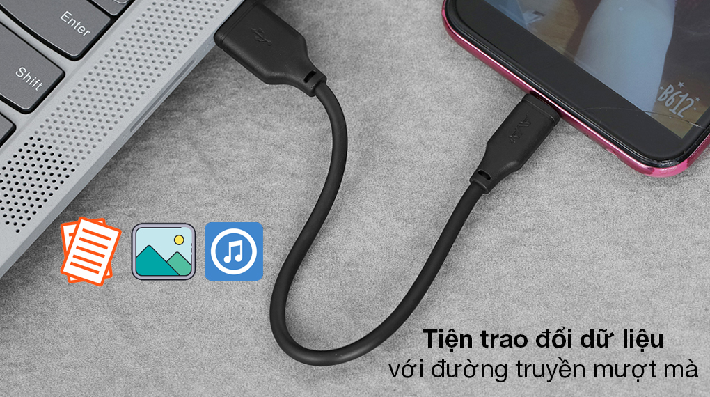 Bao phủ dây dẫn là màu đen thuần khiết, thanh lịch, chuôi cắm chất liệu kim loại bền chắc, chịu lực tác động tốt. Dây dài 0.2 m cực nhỏ nhắn, làm từ nhựa dẻo mềm, hạn chế đứt gãy, cho vào túi xách, balo, túi đeo chéo mang theo bên mình đến bất kỳ nơi nào.