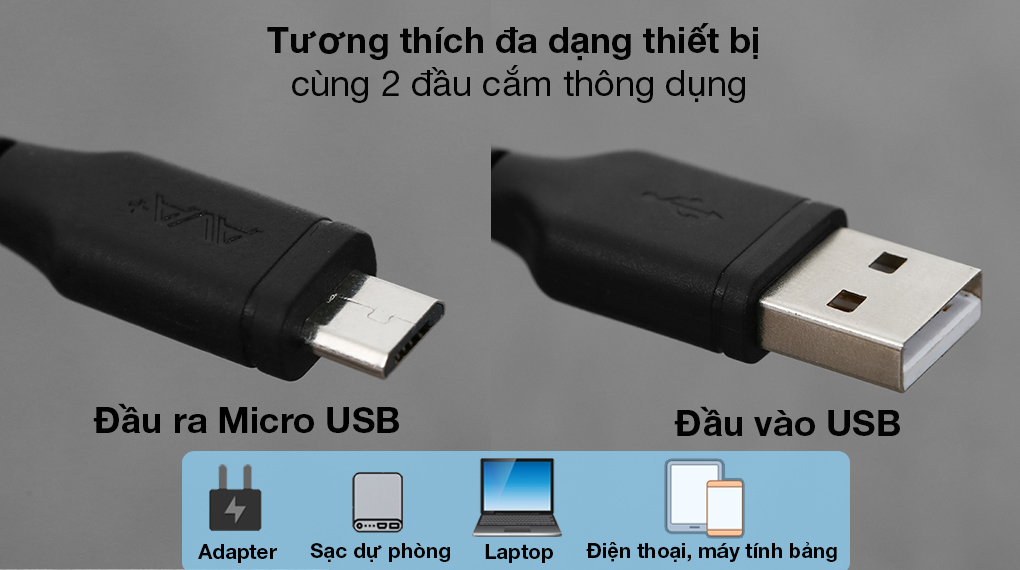 Cáp sạc tích hợp đầu ra Micro USB dòng sạc 5V - 2.1A tương thích với cổng Micro USB trên nhiều dòng điện thoại tablet, loa Bluetooth.