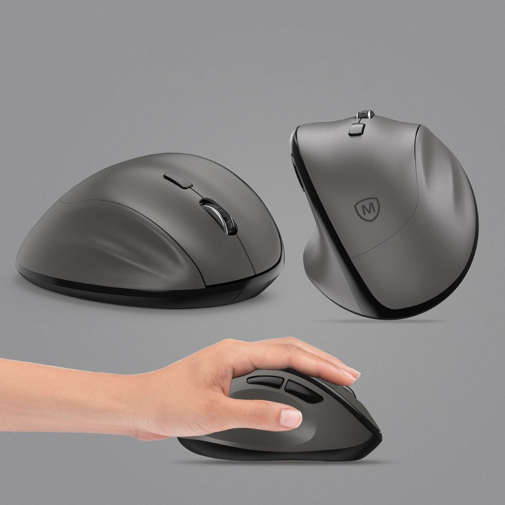 Sở hữu kích thước tương đối lớn, chuột máy tính mang lại cảm giác cầm đầm tay và chắc chắn hơn khi thao tác. Thiết kế công thái học giúp nâng đỡ bàn tay tốt, phù hợp với kiểu cầm palm hoặc claw, đặc biệt hữu ích khi làm việc liên tục trong nhiều giờ. Trọng lượng cân đối cũng góp phần tạo sự ổn định khi di chuyển.