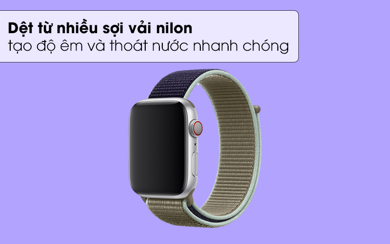 Được dệt từ nhiều sợi vải nilon nhỏ với 2 lớp dây giúp phần gài có thể bám ở vị trí bất kỳ trên dây. Với cách thiết kế này, dây đeo Apple tạo độ bền và êm khi chạm vào da. Đặc biệt chất liệu nilon giúp thoát nước rất nhanh trong điều kiện trời mưa hay mồ hôi tay tạo độ thoải mái cho tay của bạn.