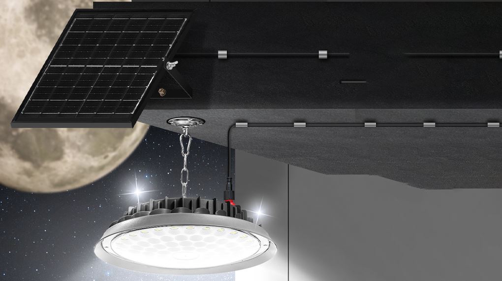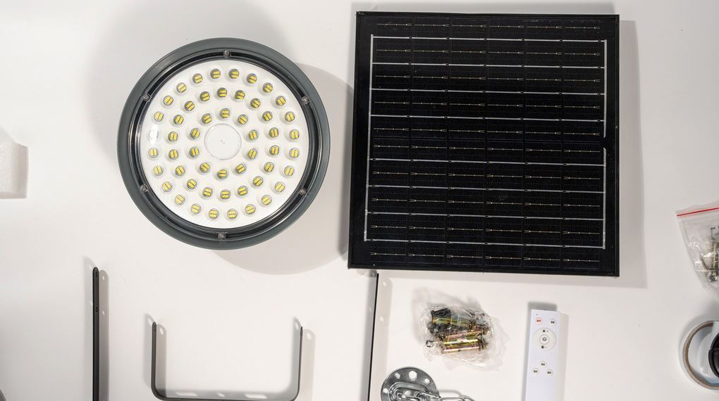 Đèn năng lượng mặt trời được thiết kế theo dạng tròn dẹt, mang lại cảm giác chắc chắn và gọn gàng khi lắp đặt. Kiểu dáng UFO giúp đèn dễ dàng treo ở nhiều vị trí khác nhau mà không gây vướng víu hay chiếm nhiều diện tích. Với đường kính lớn và độ dày vừa phải, sản phẩm phù hợp để treo tại sân vườn, hiên nhà, nhà kho,... hoặc những không gian cần ánh sáng bao phủ đều.