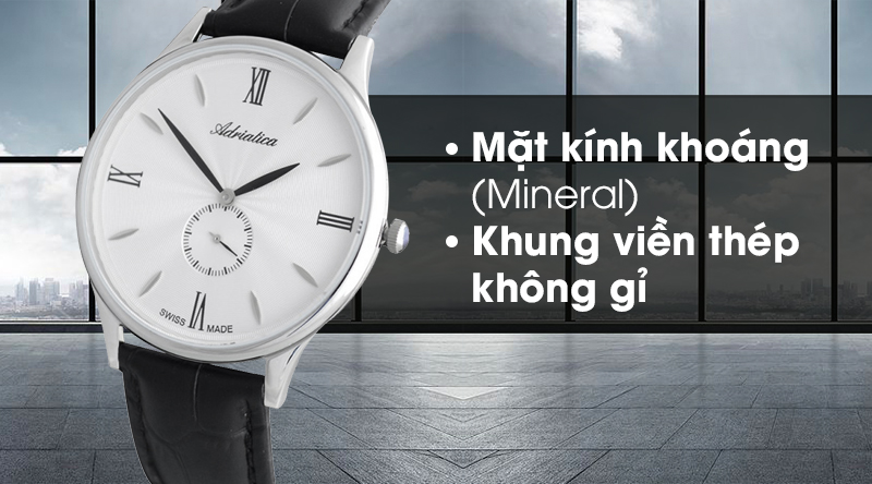 - Khung viền chiếc đồng hồ Adriatica nam này chắc chắn, chịu lực tốt, sáng bóng với khả năng chống oxi hóa.