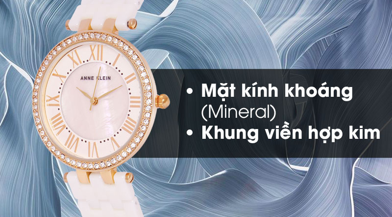 - Khung viền đồng hồ Anne Klein chắc chắn, sáng bóng, bảo vệ tốt các chi tiết bên trong trước va chạm nhẹ.