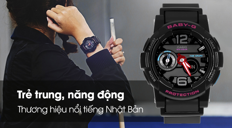 - Baby-G là một dòng đồng hồ của Casio, được lấy cảm hứng từ dòng sản phẩm G-shock dành cho nam, đồng hồ Baby-G cũng được thiết kế với phong cách, kiểu dáng thể thao, nhưng kích thước nhỏ hơn và màu sắc tươi mới hơn dành cho các bạn nữ.