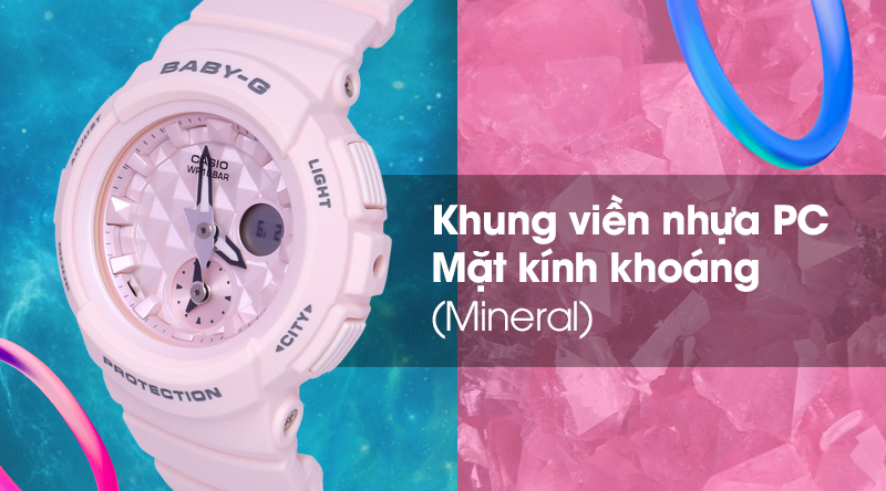 - Mặt kính chiếc đồng hồ Baby-G bền bỉ, trong suốt, có thể đánh bóng, làm mới khi trầy xước nhẹ.