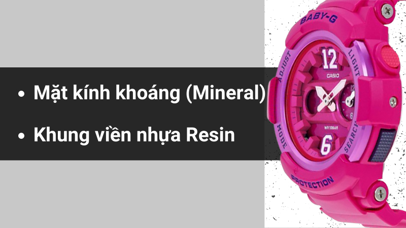 - Bảo vệ an toàn phần lõi bên trong nhờ lớp vỏ cứng cáp, chịu lực tốt. Mặt kính có độ cứng khá, dễ dàng đánh bóng như mới khi bị trầy xước. Khung viền bền bỉ, chắc chắn, an toàn khi rơi ở độ cao 10m. Dây đồng hồ kim - điện tử nhẹ nhàng, thiết kế đục lỗ phù hợp với nhiều kích cỡ cổ tay.