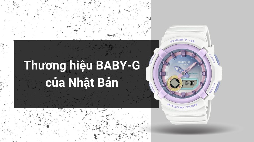 - Baby-G là một dòng đồng hồ của Casio, được lấy cảm hứng từ dòng sản phẩm G-shock dành cho nam, đồng hồ Baby-G cũng được thiết kế với phong cách, kiểu dáng thể thao, nhưng kích thước nhỏ hơn và màu sắc tươi mới hơn dành cho các bạn nữ.