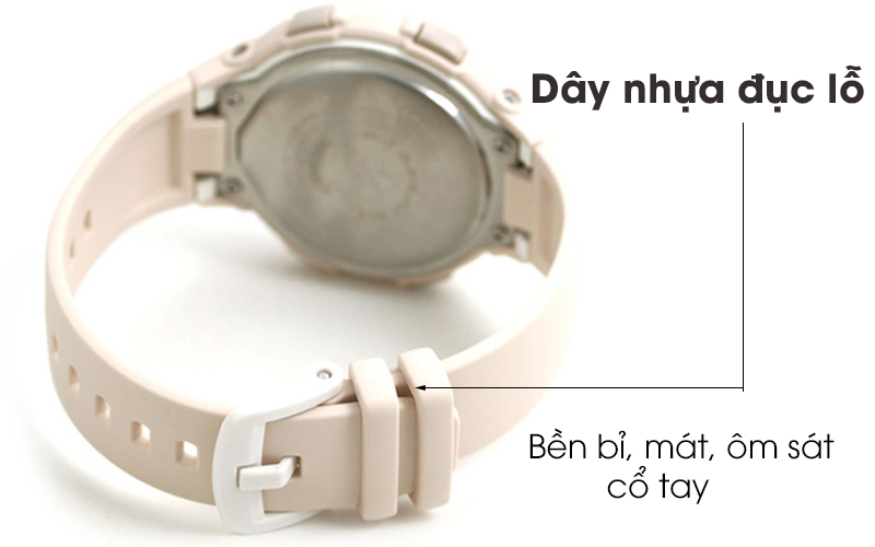 Giá trị thẩm mỹ mà chiếc đồng hồ Baby-G nữ này đem lại còn hơn cả mong đợi với dây đeo bằng nhựa mềm mại, nhẹ nhàng, tạo cảm giác thoải mái, dễ chịu cho người sử dụng. Với thiết kế dây đục lỗ, có khóa cài thì các bạn nữ có thể thay đổi kích thước phù hợp với tay của mình.