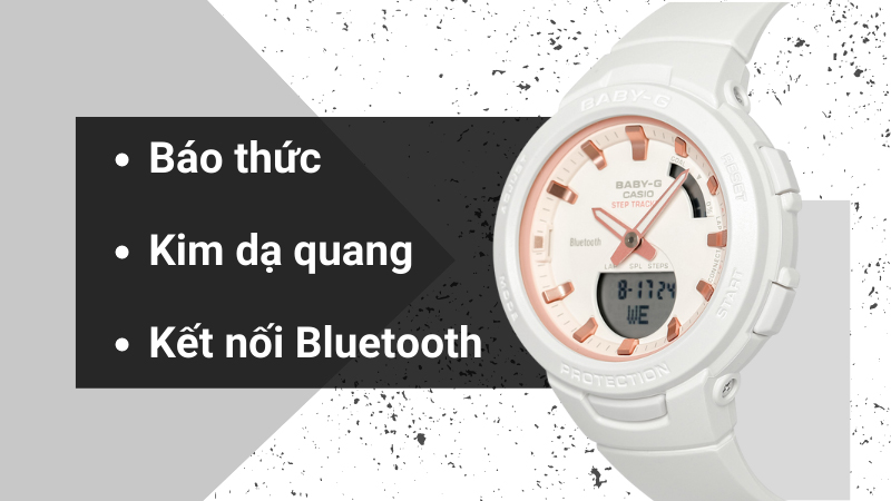 • Chiếc đồng hồ Baby-G với tính năng đếm bước chân bằng cách sử dụng cảm biến đo lường 3 trục: phạm vi đếm bước 0 đến 999 999, sẽ là lựa chọn tuyệt vời dành cho cô nàng nào thường xuyên chạy bộ. Dễ dàng quản lý calo thông qua chiếc đồng hồ này bằng việc kết nối Bluetooth với ứng dụng "BABY-G Connected".