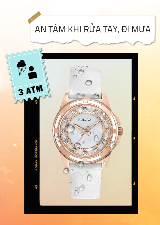 - Chỉ số chống nước 3 ATM: An toàn khi đeo đồng hồ đi mưa, rửa tay, không mang khi tắm, bơi, lặn