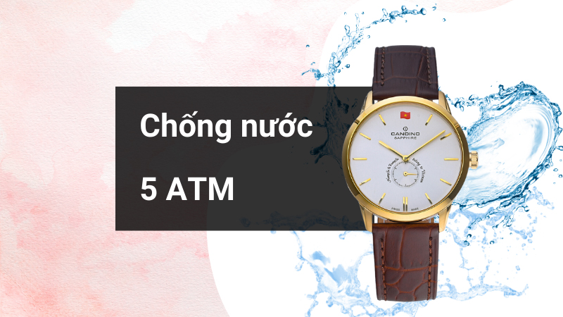 • Hệ số chống nước của mẫu đồng hồ này lên tới 5 ATM: Người dùng thoải mái đeo đồng hồ khi đi tắm, đi mưa, không sử dụng khi đi bơi, lặn.