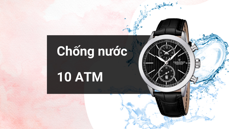 • Chống nước 10 ATM: Người dùng thoải mái đeo đồng hồ khi đi tắm, đi bơi, không mang khi lặn.