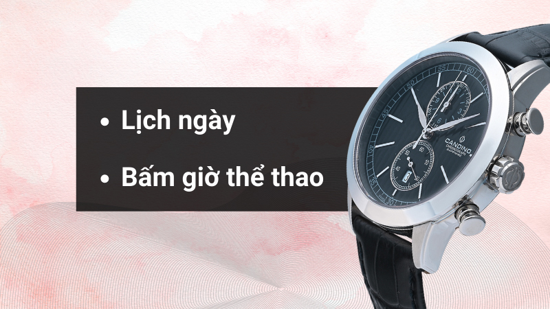• Đồng hồ được trang bị lịch ngày, bấm giờ thể thao rất tiện dụng.