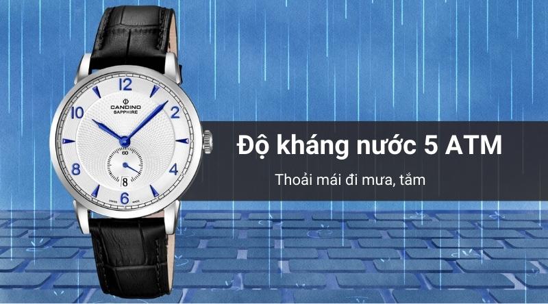 - Hệ số chống nước 5 ATM: Yên tâm đeo khi tắm, đi mưa mà không lo hư hỏng do vào nước, không mang khi bơi, lặn.
