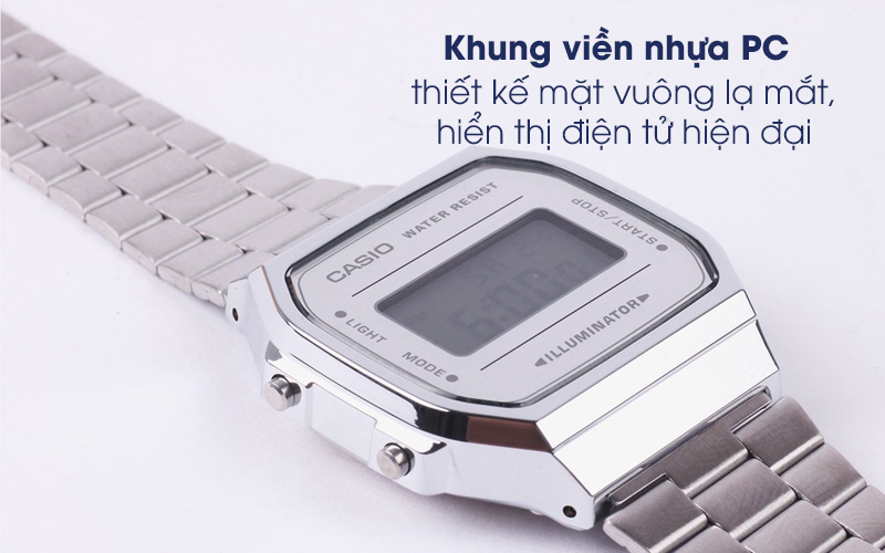 Chiếc đồng hồ nam/nữ Casio A168WEM-7DF bạc có khung viền được làm từ nhựa PC, chất liệu nhựa này có ưu điểm như nhẹ nhàng, khả năng chịu va đập tốt, có độ bền cao, với những ưu điểm này chiếc đồng hồ sẽ trở nên cứng cáp và an toàn hơn trước các tác động từ bên ngoài.