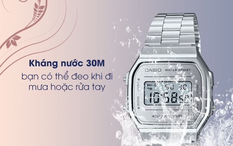 Đồng hồ Casio nữ có thể đồng hành cùng bạn trong khi đi mưa, hay lúc bạn rửa tay, rửa mặt mà bạn không lo đồng hồ bị vô nước, nhờ vào khả năng kháng nước 3 ATM của đồng hồ.