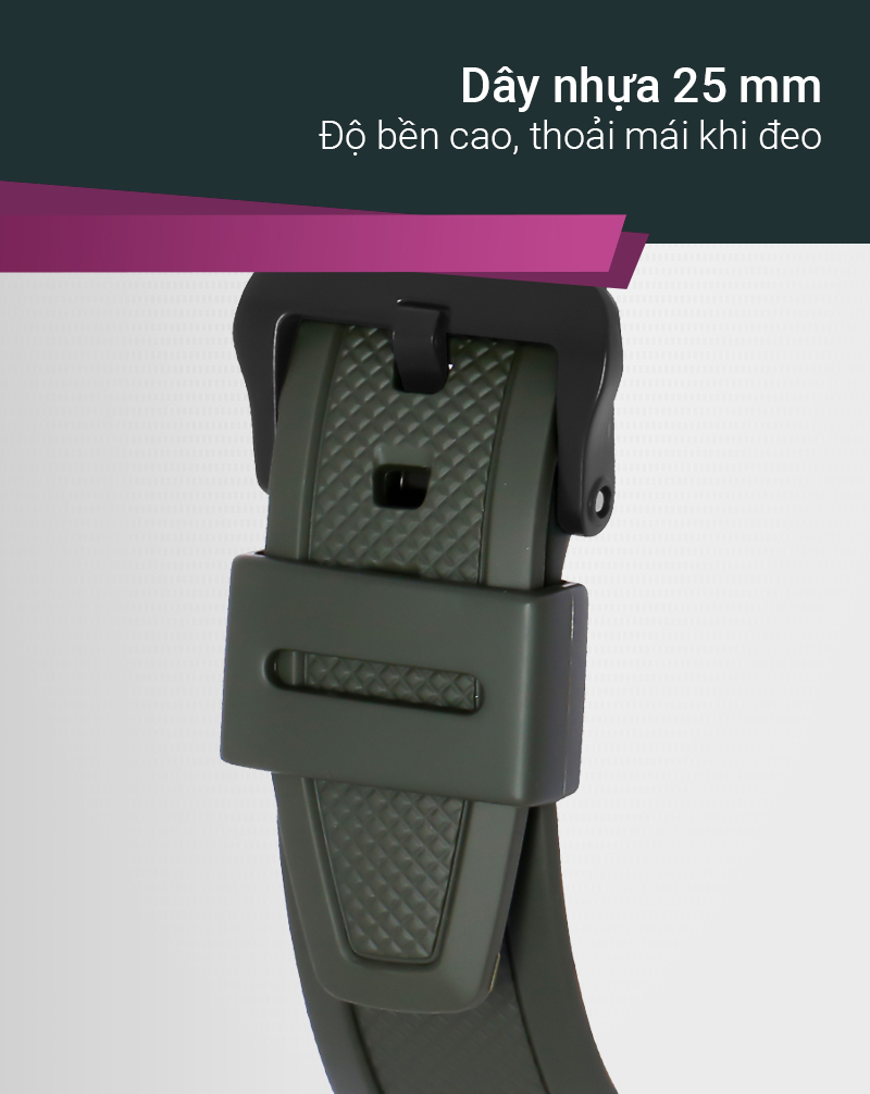 - Khung viền nhựa PC gọn nhẹ, có khả năng chịu va đập tốt. Dây nhựa chống thấm nước tốt, ôm trọn cổ tay khi đeo.