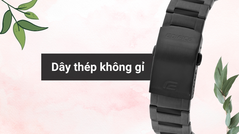 - Khung viền và dây đeo được làm từ chất liệu thép không gỉ chắc chắn, chịu được mọi thời tiết, sáng bóng nhờ khả năng chống oxi hóa