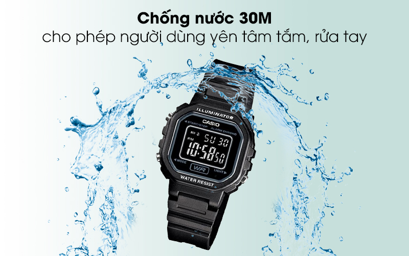 Với khả năng chống nước 30m, chiếc đồng hồ Casio này cho phép bạn rửa tay, đi mưa thoải mái, không lo đồng hồ bị vô nước hay thấm nước.