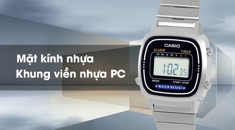 - Mặt kính của mẫu đồng hồ điện tử có độ bền cao, không bị lóa dưới ánh sáng mạnh.