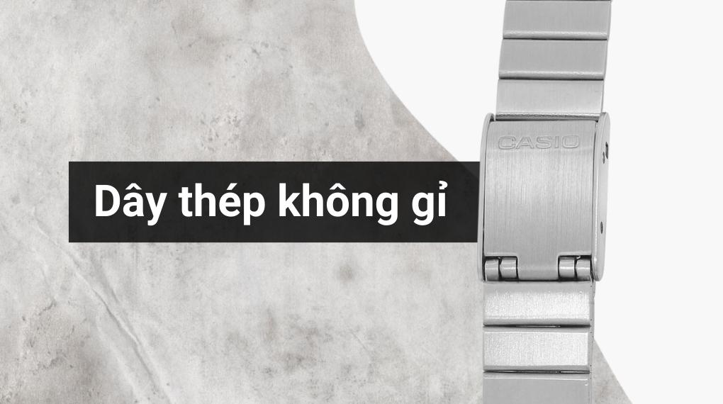 • Hơn nữa, để càng tối ưu cảm giác đeo, hãng đã tinh tế sử dụng chất liệu nhựa bền nhẹ có khả năng chịu lực ổn cho phần khung viền kết hợp với phần dây đeo đồng hồ Casio được làm từ chất liệu thép không gỉ mát tay, cứng cáp và hạn chế ăn mòn tốt, không chỉ tôn lên nét cá tính một thời của phong cách retro này mà còn vô cùng bền bỉ.