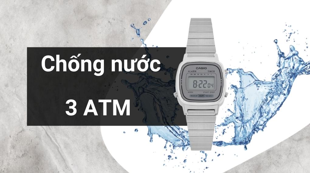 • Việc rửa tay hay đi mưa nhỏ với chiếc đồng hồ nữ này là điều hoàn toàn có thể bởi hệ số chống nước của sản phẩm lên đến 3 ATM, giúp bạn có thể an tâm trong các sinh hoạt hằng ngày. Lưu ý: không mang theo sản phẩm khi tắm, bơi hoặc lặn.