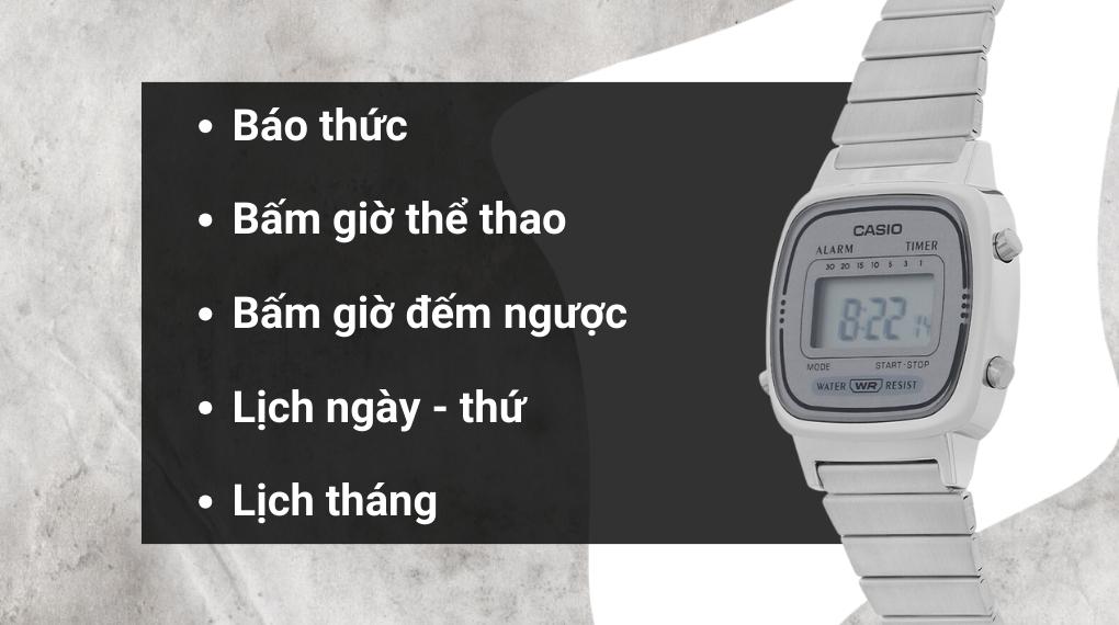 • Đồng hồ Casio 24.6 mm Nữ LA670WA-7DF lấy cảm hứng từ biểu tượng đồng hồ thời trang “vàng son” một thời. Khoác lên mình là những gam màu đơn giản, thanh lịch với thiết kế hướng về sự cổ điển. Đây sẽ là chiếc phụ kiện phù hợp với những cô nàng yêu thích phong cách retro.