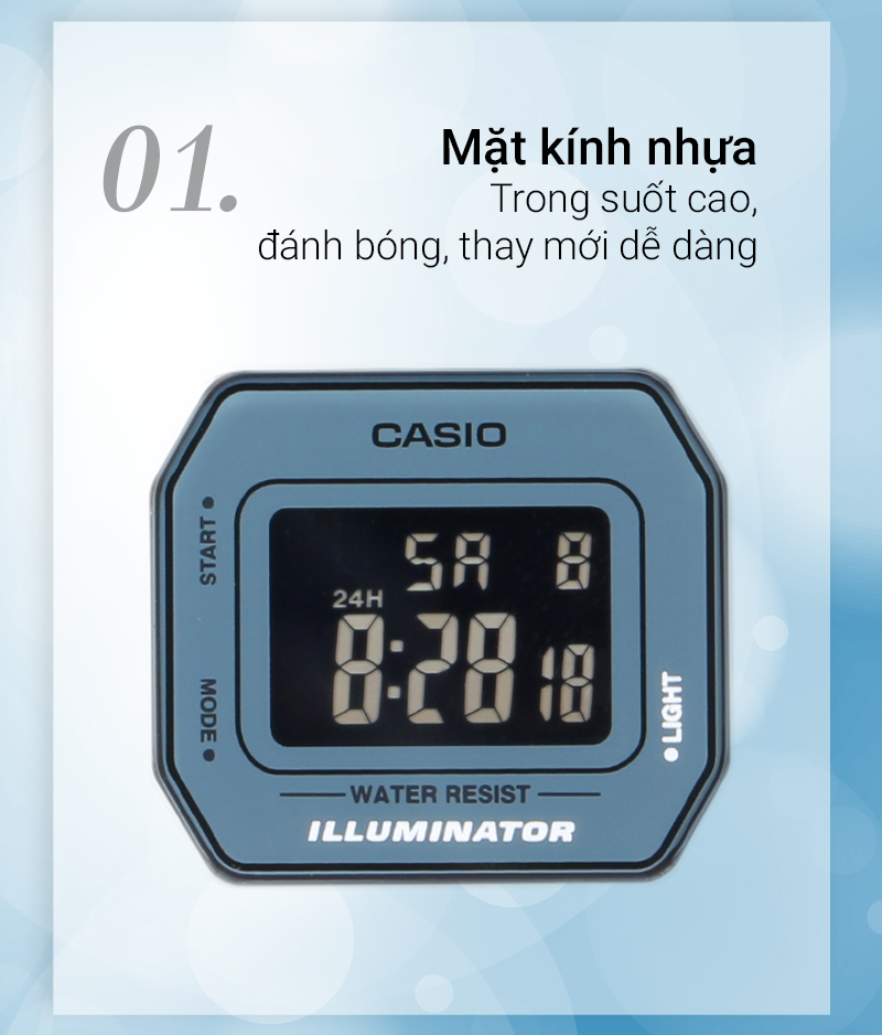 - Đồng hồ CASIO 28.5 mm Unisex LA680WA-2BDF có khung viền nhựa PC nhẹ nhàng, có khả năng chịu va đập tốt. Dây đeo hợp kim chắc chắn, chịu được mọi thời tiết
