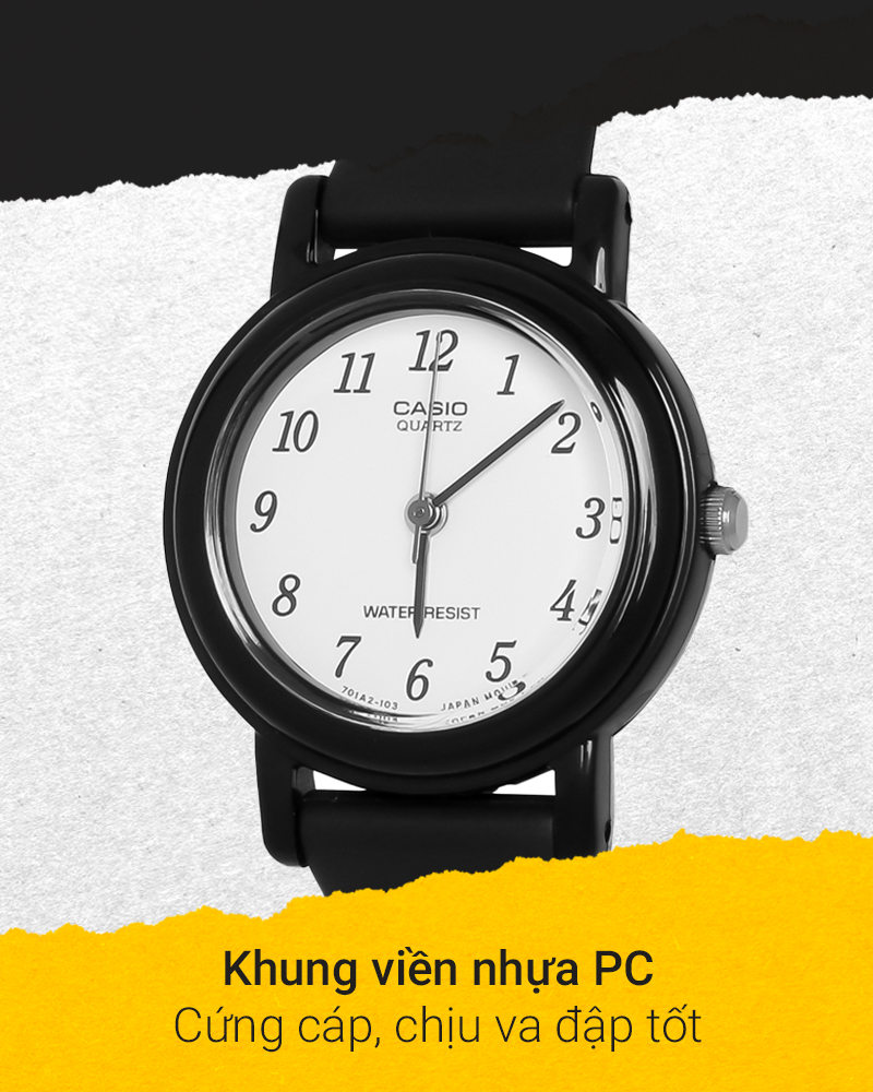 - Chiếc đồng hồ nữ có khung viền nhựa PC bền bỉ và nhẹ nhàng. Dây đeo bằng nhựa với khả năng ôm trọn cổ tay người dùng