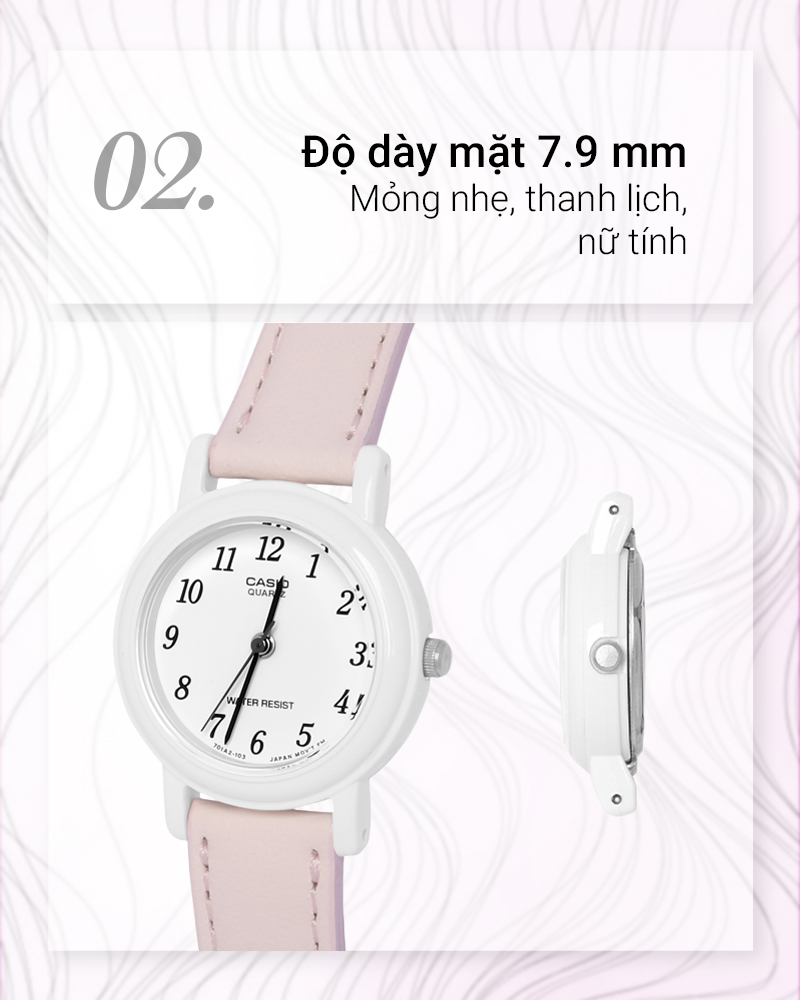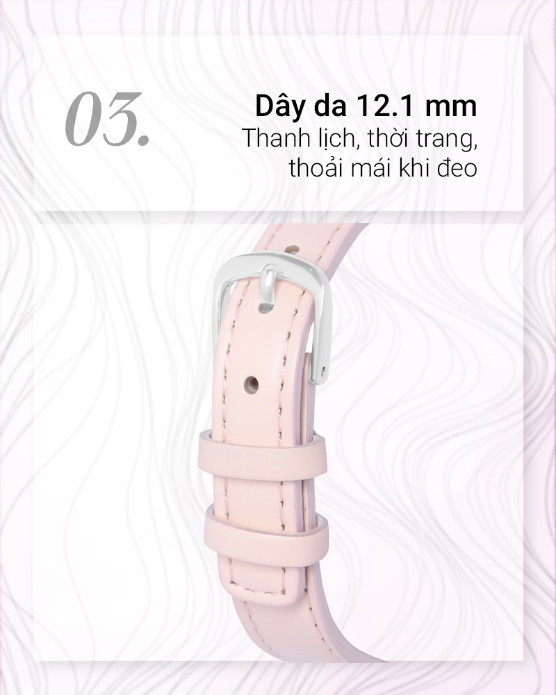 - Mẫu đồng hồ nữ này sở hữu đường kính mặt 25 mm, độ rộng dây 12.1 mm