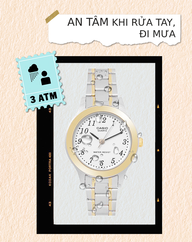 - Có thể đeo đồng hồ ngay cả khi rửa tay, đi mưa nhờ có hệ số chống nước 3 ATM, không nên đeo khi tắm rửa