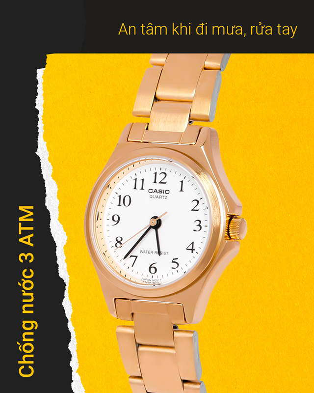 - Chỉ số chống nước của chiếc đồng hồ nữ này là 3 ATM nên hoàn toàn yên tâm đeo khi rửa tay, đi mưa, không đeo khi bơi, lặn