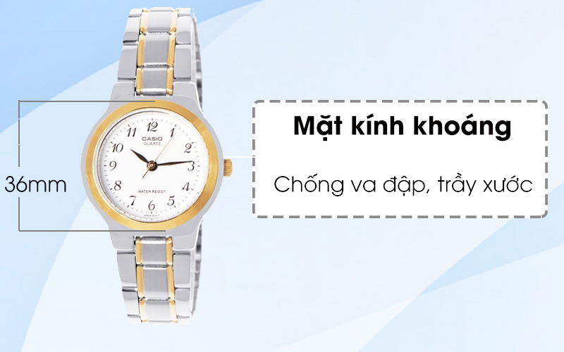 Mẫu đồng hồ Casio này được trang bị lớp kính khoáng không chỉ bảo vệ đồng hồ trước các va chạm mà còn hiển thị rõ các chi tiết bên dưới.