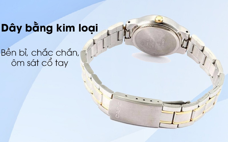 Chất liệu chính của đồng hồ nữ Casio LTP-1131G-7BRDF bạc là kim loại tạo nên sự cứng cáp bên ngoài và thương hiệu Nhật Bản cùng độ đáng tin bên trong.