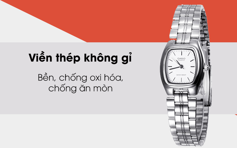 Với khung viền được làm bằng thép giúp bảo vệ tốt các thiết bị bên trong. Thép không gỉ khó bay màu cho chiếc đồng hồ Casio nữ của bạn luôn giữ được nét sang trọng. Bên sườn thiết kế một nút điều chỉnh xoay duy nhất cho bạn dễ dàng sử dụng.