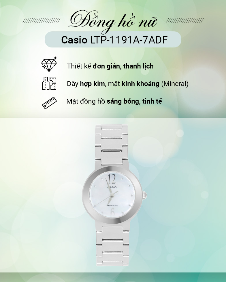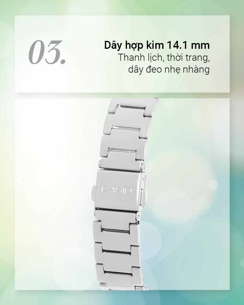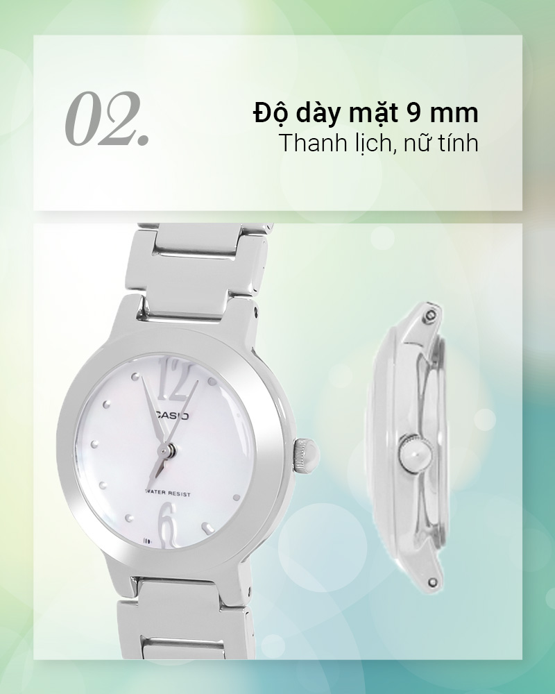 - Chiếc đồng hồ nữ này có đường kính mặt 25.6 mm, độ rộng dây 14.1 mm, phù hợp với những bạn có cổ tay nhỏ