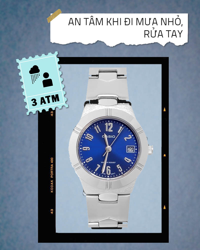 - Chống nước 3 ATM: An toàn khi đeo đồng hồ đi mưa, rửa tay, không mang khi tắm, bơi lội