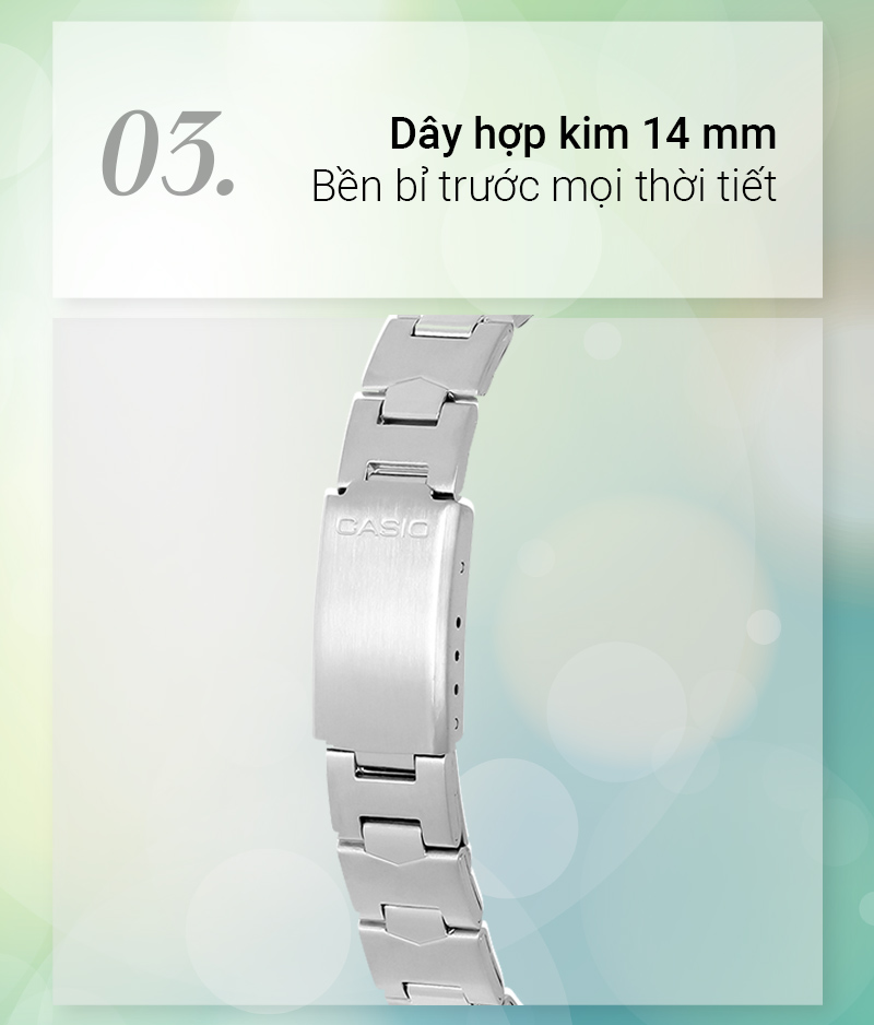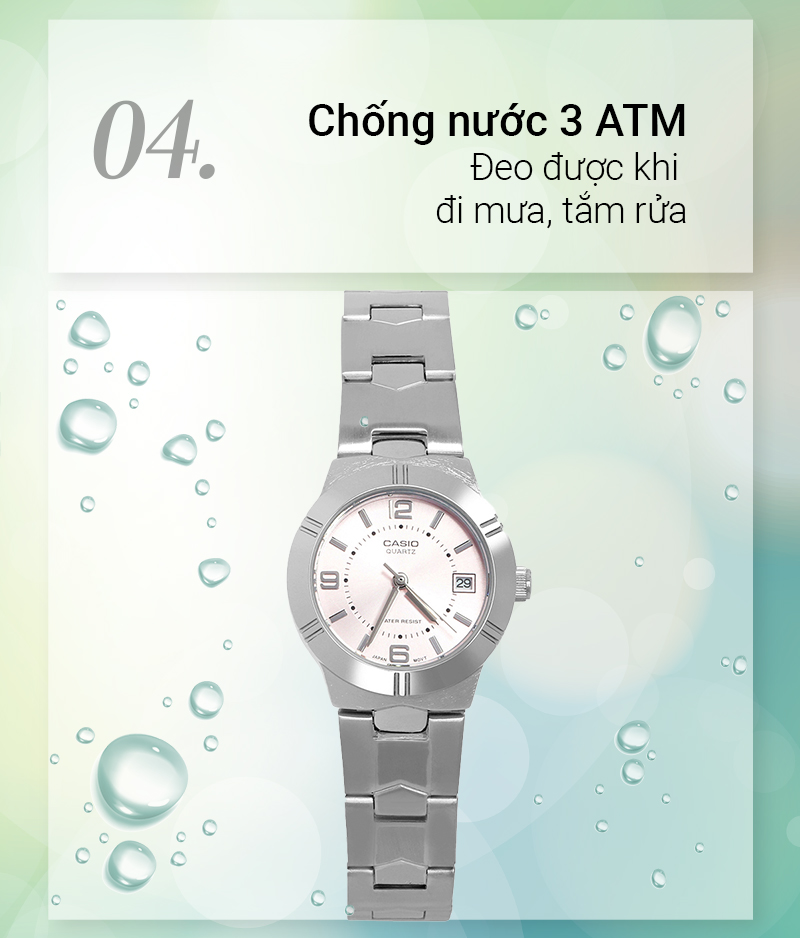 - Chiếc đồng hồ nữ này có hệ số chống nước là 3 ATM nên hoàn toàn yên tâm đeo khi rửa tay, đi mưa, không đeo khi bơi, lặn