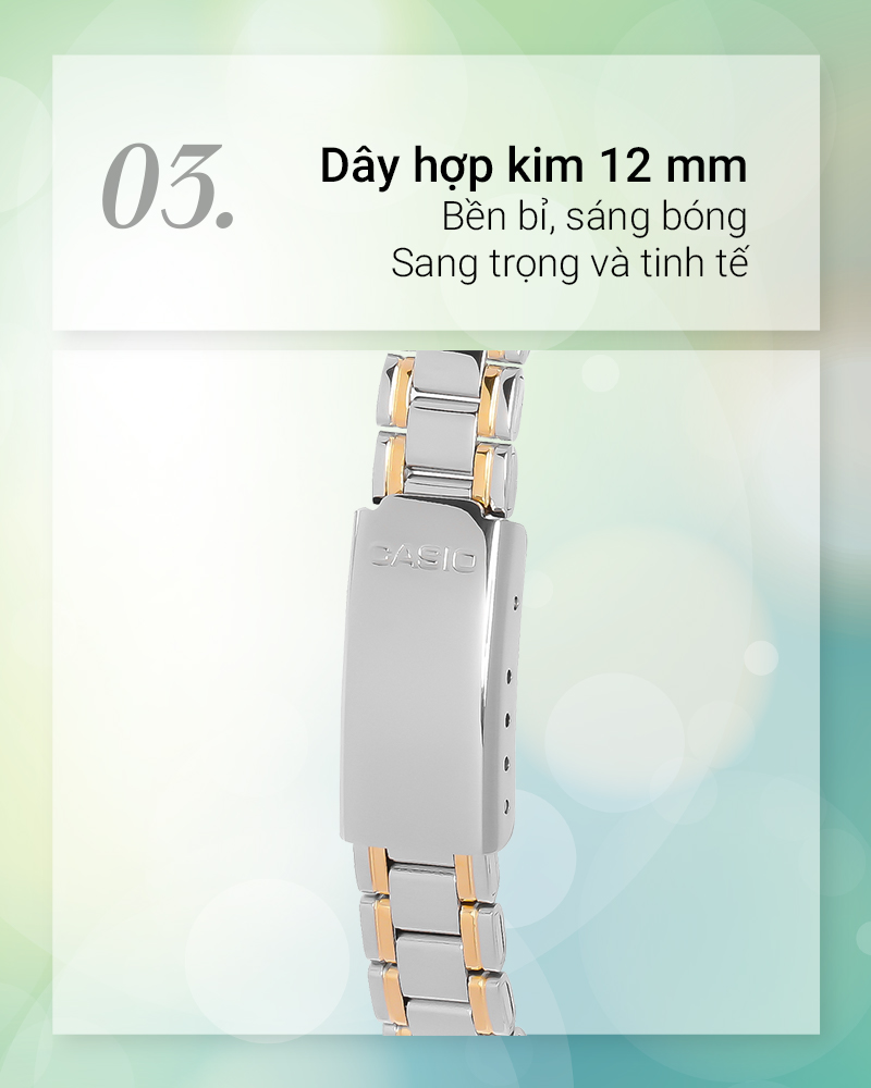 - Khung viền thép không gỉ bền chắc, chịu lực tốt. Dây hợp kim cho cảm giác mát tay, thiết kế khóa ba gập thuận tiện hơn khi đeo