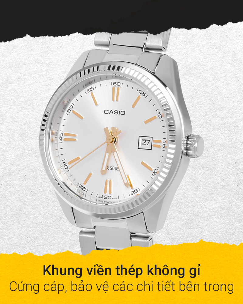 - Khung viền thép không gỉ bền bỉ, có khả năng chịu va đập tốt. Dây đeo hợp kim chắc chắn, chịu được mọi thời tiết